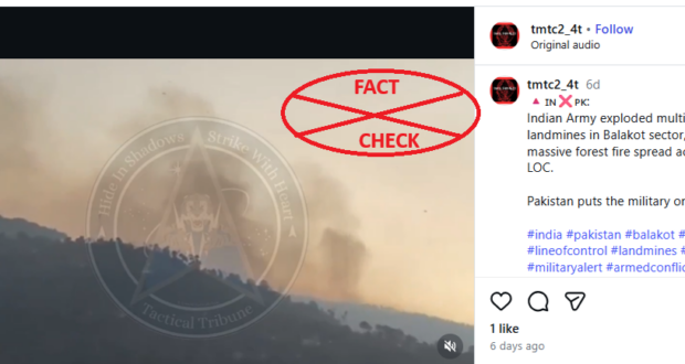 ಹೇಳಿಕೆ/Claim: ಭಾರತೀಯ ಸೇನೆಯು ಬಾಲಕೋಟ್ ಸೆಕ್ಟರ್ನಲ್ಲಿ ಅನೇಕ ನೆಲಬಾಂಬ್ಗಳನ್ನು ಸ್ಫೋಟಿಸಿದ್ದರಿಂದ, LoC ಉದ್ದಕ್ಕೂ ಭಾರಿ ಪ್ರಮಾಣದ ಕಾಳ್ಗಿಚ್ಚು ಹಬ್ಬಿತು. ಕಡೆನುಡಿ/Conclusion: ಈ ಹೇಳಿಕೆ ದಾರಿ ತಪ್ಪಿಸುವಂತಿದೆ. ಡಿಸೆಂಬರ್ 7, 2025ರಂದು LoC (ನಿಯಂತ್ರಣ ರೇಖೆ) ಉದ್ದಕ್ಕೂ ಕಾಡಿನ ಬೆಂಕಿಯ ಕಾರಣದಿಂದ ಅನೇಕ ನೆಲಬಾಂಬ್ಗಳು ಹೊತ್ತಿಕೊಂಡವು, ಭಾರತೀಯ ಸೇನೆಯು ನೆಲಬಾಂಬ್ಗಳನ್ನು ಸ್ಫೋಟಿಸಲಿಲ್ಲ. ಆದರೆ, ಯಾವುದೇ ಸಾವುನೋವುಗಳು ವರದಿಯಾಗಿಲ್ಲ. ರೇಟಿಂಗ್/Rating: ದಾರಿ ತಪ್ಪಿಸುವಂತಿದೆ. — ****************************************************** ವೀಡಿಯೊದಲ್ಲಿ ಸಂಪೂರ್ಣ ಸತ್ಯ ಪರಿಶೀಲನೆಯನ್ನು ನೋಡಲು ಚಿತ್ರದ ಮೇಲೆ ಕ್ಲಿಕ್ಕಿಸಿ. ಅಥವಾ ಕೆಳಗಿನ ಲೇಖನವನ್ನು ಓದಿ. ****************************************************** ಭಾರತೀಯ ಸೇನೆಯು ...