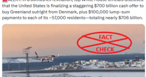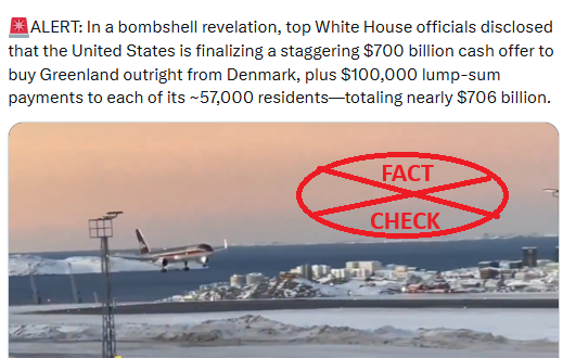 ಹೇಳಿಕೆ/Claim :ಯುನೈಟೆಡ್ ಸ್ಟೇಟ್ಸ್ ಗ್ರೀನ್ಲ್ಯಾಂಡ್ ಅನ್ನು ಖರೀದಿಸಲು 700 ಬಿಲಿಯ ಡಾಲರ್ ಗಳ ನಗದು ಆಫರ್, ಜೊತೆಗೆ ಅದರ 57,000 ನಿವಾಸಿಗಳಿಗೆ $100,000 ಒಟ್ಟು ಮೊತ್ತದ ಪಾವತಿಗಳನ್ನು ಅಂತಿಮಗೊಳಿಸುತ್ತಿದೆ. ಕಡೆನುಡಿ/Conclusion : ಹೇಳಿಕೆ ಸುಳ್ಳು. ಟ್ರಂಪ್ ಆಡಳಿತವು ಕಾರ್ಯತಾಂತ್ರಿಕ ಕಾರಣಗಳಿಗಾಗಿ ಗ್ರೀನ್ಲ್ಯಾಂಡ್ ಅನ್ನು ಸ್ವಾಧೀನಪಡಿಸಿಕೊಳ್ಳಲು ಆಸಕ್ತಿ ವ್ಯಕ್ತಪಡಿಸಿದೆಯಾದರೂ, ನಿವಾಸಿಗಳಿಗೆ ನೀಡಲಾಗುವ ಪಾವತಿಗಳ ಕುರಿತು ಚರ್ಚೆಗಳು ಎಂದಿಗೂ ಸಾರ್ವಜನಿಕವಾಗಿ ಹೊರಬಂದಿಲ್ಲ. ರೇಟಿಂಗ್/Rating : ಸುಳ್ಳು — ****************************************************** ವೀಡಿಯೊದಲ್ಲಿ ಸಂಪೂರ್ಣ ಸತ್ಯ ಪರಿಶೀಲನೆಯನ್ನು ನೋಡಲು ಚಿತ್ರದ ಮೇಲೆ ಕ್ಲಿಕ್ಕಿಸಿ. ಅಥವಾ ಕೆಳಗಿನ ಲೇಖನವನ್ನು ಓದಿ. ****************************************************** ...