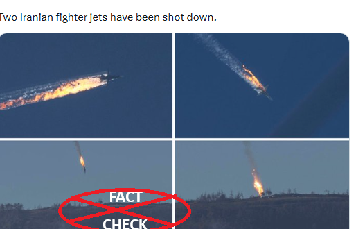ಹೇಳಿಕೆ/Claim:ಜನವರಿ 2026 ರಲ್ಲಿ ನಡೆದ ಇತ್ತೀಚಿನ ಸಂಘರ್ಷದ ಸಮಯದಲ್ಲಿ ಎರಡು ಇರಾನೀ ಯುದ್ಧ ವಿಮಾನಗಳನ್ನು ಹೊಡೆದುರುಳಿಸಲಾಗಿದೆ ಎಂದು ಚಿತ್ರ ಹೇಳುತ್ತದೆ. ಕಡೆನುಡಿ/Conclusion: ಹೇಳಿಕೆ ಸುಳ್ಳು. ಜನವರಿ 2026ರಲ್ಲಿ ಇಂತಹ ಘಟನೆ ನಡೆದಿದೆ ಎಂಬುದಕ್ಕೆ ಯಾವುದೇ ವಿಶ್ವಾಸಾರ್ಹ ಪುರಾವೆಗಳಿಲ್ಲ. ಹಂಚಿಕೊಳ್ಳಲಾದ ಚಿತ್ರವು 2015 ರಲ್ಲಿ ಟರ್ಕಿಶ್ F16 ಜೆಟ್ಗಳ ಮೂಲಕ ಹೊಡೆದುರುಳಿಸಲ್ಪಟ್ಟ ರಷ್ಯಾದ ಸುಖೋಯ್ Su-24 ವಿಮಾನದ ಚಿತ್ರವಾಗಿದೆ. ರೇಟಿಂಗ್/Rating: ಸಂಪೂರ್ಣವಾಗಿ ಸುಳ್ಳು — ****************************************************** ವೀಡಿಯೊದಲ್ಲಿ ಸಂಪೂರ್ಣ ಸತ್ಯ ಪರಿಶೀಲನೆಯನ್ನು ನೋಡಲು ಚಿತ್ರದ ಮೇಲೆ ಕ್ಲಿಕ್ಕಿಸಿ. ಅಥವಾ ಕೆಳಗಿನ ಲೇಖನವನ್ನು ಓದಿ. ****************************************************** ...
