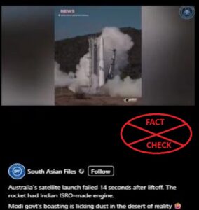 ಹೇಳಿಕೆ/Claim: 14 ಸೆಕೆಂಡುಗಳಲ್ಲಿ ಪತನಗೊಂಡ ಮೊದಲ ಆಸ್ಟ್ರೇಲಿಯಾ ನಿರ್ಮಿತ ಆರ್ಬಿಟಲ್ ರಾಕೆಟ್, ಎರಿಸ್, ಇಸ್ರೋ (ಭಾರತೀಯ ಬಾಹ್ಯಾಕಾಶ ಸಂಶೋಧನಾ ಸಂಸ್ಥೆ) ಒದಗಿಸಿದ ಎಂಜಿನ್ ಅನ್ನು ಬಳಸುತ್ತಿತ್ತು.