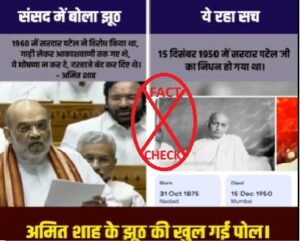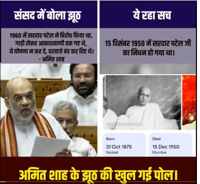 ಗೃಹ ಸಚಿವ ಅಮಿತ್ ಶಾರವರು ಸಂಸತ್ತಿನಲ್ಲಿ ಭಾಷಣ ಮಾಡುವಾಗ ಸುಳ್ಳು ಹೇಳಿದ್ದಾರೆ ಎಂದು ಆರೋಪಿಸಿ ಸಾಮಾಜಿಕ ಜಾಲತಾಣಗಳಲ್ಲಿ ಹಲವಾರು ಪೋಸ್ಟ್ಗಳು ಮತ್ತು ವೀಡಿಯೊಗಳನ್ನು ಹಂಚಿಕೊಳ್ಳಲಾಗಿದೆ. ಮಳೆಗಾಲದ ಅಧಿವೇಶನದ 7 ನೇ ದಿನದಂದು ಒಂದು ಗಂಟೆಗೂ ಹೆಚ್ಚು ಕಾಲ ನಡೆದ ಅವರ ಭಾಷಣದಲ್ಲಿ ಅವರು ಜವಾಹರಲಾಲ್ ನೆಹರು ರವರ ವೈಫಲ್ಯವನ್ನು ಮತ್ತು ಸರ್ದಾರ್ ವಲ್ಲಭಭಾಯಿ ಪಟೇಲರನ್ನು ಪ್ರಸ್ತಾಪಿಸುವುದನ್ನು ವೀಡಿಯೊ ತೋರಿಸುತ್ತದೆ. ಹಲವಾರು ಬಳಕೆದಾರರು ಈ ಕ್ಷಣವನ್ನು ಸಾಮಾಜಿಕ ಮಾಧ್ಯಮದಲ್ಲಿ ಹಂಚಿಕೊಂಡು, ಸರ್ದಾರ್ ಪಟೇಲರು 1950 ರಲ್ಲಿ ಮರಣಹೊಂದಿದರೂ ಸಹ 1960 ರಲ್ಲಿ ಪ್ರತಿಭಟಿಸಿರುವ ಬಗ್ಗೆ ಅಮಿತ್ ಶಾರವರು ಮಾತನಾಡಿದ್ದಾರೆ ಎಂದು ಹೇಳಿಕೊಂಡಿದ್ದಾರೆ.