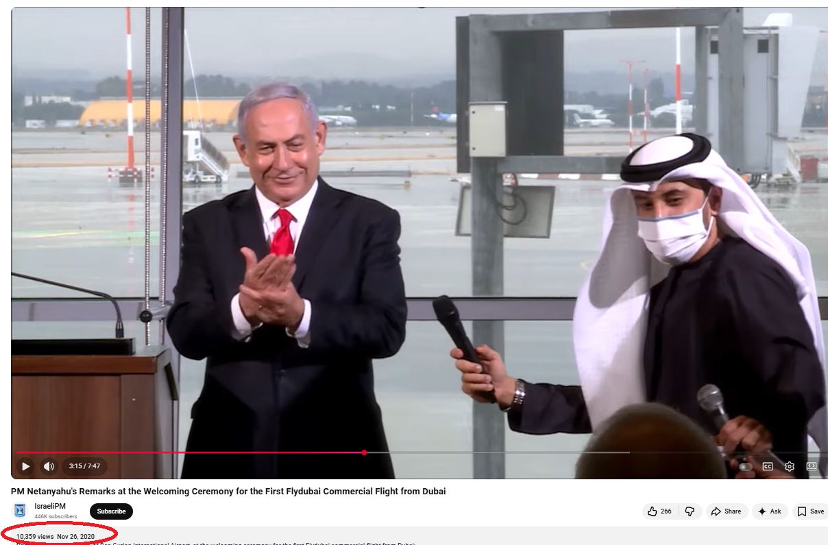 ಗಲ್ಫ್ ನ್ಯೂಸ್ ಪ್ರಕಟಿಸಿದ ವರದಿಯಂತಹ ಇತರ ವರದಿಗಳು ಸಹ ಈ ಘಟನೆ ನವೆಂಬರ್ 26, 2020 ರಂದು ನಡೆದದ್ದು ಎಂದು ದೃಢಪಡಿಸುತ್ತವೆ. ದುಬೈನಿಂದ ಇಸ್ರೇಲ್ಗೆ ಮೊದಲ ಫ್ಲೈದುಬೈ ವಾಣಿಜ್ಯ ವಿಮಾನದ ಸ್ವಾಗತ ಸಮಾರಂಭದಲ್ಲಿ ಪ್ರಧಾನಿ ನೆತನ್ಯಾಹು ರವರ ಹೇಳಿಕೆಗಳನ್ನು ಸಂಕ್ಷಿಪ್ತವಾಗಿ ವಿವರಿಸಿ ಇಸ್ರೇಲ್ PMO ಅಧಿಕೃತ ಪತ್ರಿಕಾ ಪ್ರಕಟಣೆಯನ್ನು ಬಿಡುಗಡೆ ಮಾಡಿತ್ತು. ಆದಾಗ್ಯೂ, ಈ ಹೇಳಿಕೆಯಲ್ಲಿ ಕೋವಿಡ್ 19 ಸಾಂಕ್ರಾಮಿಕದ ಸಂದರ್ಭವನ್ನು ತಿಳಿಸದೆ ಬಿಡಲಾಗಿದೆ ಮತ್ತು ಇದು ಸಾಂಸ್ಕೃತಿಕ ಅಗೌರವ ಎಂದು ತಪ್ಪಾಗಿ ಚಿತ್ರಿಸಲಾಗಿದೆ.