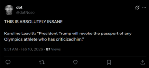 Karoline Leavitt: “President Trump will revoke the passport of any Olympics athlete who has criticized him.”