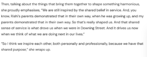 ಭಾರತದ 2026ರ AI ಶೃಂಗಸಭೆಯ ಸಮಯದಲ್ಲಿ ರಿಷಿ ಸುನಾಕ್ ಅವರ ತಮಾಷೆಯ ಹೇಳಿಕೆಯನ್ನು ಫೆಬ್ರವರಿ 21, 2026 ರಂದು ಪ್ರಕಟವಾದ ಮತ್ತೊಂದು TOI ವರದಿಯು ಚರ್ಚಿಸುತ್ತದೆ. ಆತ ತಮಾಷೆಯಾಗಿ ಹೇಳಿದರು, “ನಾನು ಕುಟುಂಬದೊಂದಿಗಿನ ಊಟದ ಸಮಯದಲ್ಲಿ ಅವರದೇ (ಅತ್ತೆ-ಮಾವ) ಮಟ್ಟದಲ್ಲಿ ಮುಂದುವರೆಯಲು ಸಾಧ್ಯವಾದರೆ, ನಾನು ಬಹುಶಃ ಶೃಂಗಸಭೆಯ ಚರ್ಚೆಗಳನ್ನು ನಿಭಾಯಿಸಬಹುದು.” ಈ ಹೇಳಿಕೆಯು ಜನಸಮೂಹವನ್ನು ನಗೆಗಡಲಲ್ಲಿ ತೇಲಿಸಿತು, ಆದರೆ ಸುನಾಕ್ ತಮ್ಮ ಪತ್ನಿಯ ಅನಾರೋಗ್ಯದ ಬಗ್ಗೆ ಅಥವಾ ಆಕೆ ಆಸ್ಪತ್ರೆಗೆ ದಾಖಲಾಗಿರುವ ಬಗ್ಗೆ ಮಾತನಾಡಿದ ಯಾವುದೇ ನಿದರ್ಶನಗಳಿಲ್ಲ.