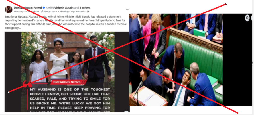 ಡಿಜಿಟೈ ಇಂಡಿಯಾ ಈ ಹೇಳಿಕೆಯನ್ನು ತನಿಖೆ ಮಾಡಲು ನಿರ್ಧರಿಸಿತು ಮತ್ತು ಅದು ಸುಳ್ಳು ಎಂದು ಕಂಡುಕೊಂಡಿತು. UK ಮಾಜಿ ಪ್ರಧಾನಿ ರಿಷಿ ಸುನಾಕ್ ಅವರ ಯಾವುದೇ ಅಧಿಕೃತ ಹೇಳಿಕೆಯು ಇದನ್ನು ಬೆಂಬಲಿಸುವುದಿಲ್ಲ. ಅಕ್ಷತಾ ಮೂರ್ತಿಯವರನ್ನು ಆಸ್ಪತ್ರೆಗೆ ದಾಖಲಿಸಲಾಗಿದೆ ಎಂಬುದಕ್ಕೆ ಯಾವುದೇ ಪುರಾವೆಗಳಿಲ್ಲ, ಮತ್ತು ಯಾವುದೇ ವಿಶ್ವಾಸಾರ್ಹ ಮಾಧ್ಯಮ ಸಂಸ್ಥೆಗಳು ಅಂತಹ ಘಟನೆಯನ್ನು ವರದಿ ಮಾಡಿಲ್ಲ.