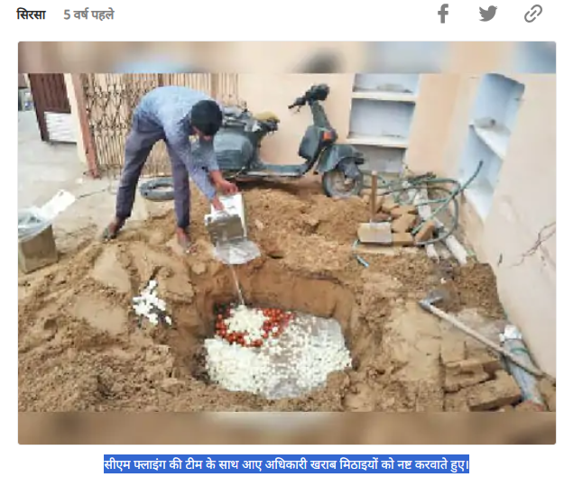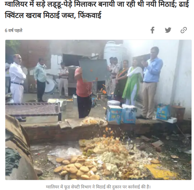 ಇದರ ನಂತರ, 5 ವರ್ಷಗಳ ಹಿಂದೆ ಅಮರ್ ಉಜಾಲಾ “मुख्यमंत्री उड्नदस्ते ने एक क्विंटल खराब मिठाई कराया नष्ट” ಎಂಬ ಶೀರ್ಷಿಕೆಯೊಂದಿಗೆ ಪ್ರಕಟಿಸಿದ ವರದಿಯು ನಮಗೆ ರಿವರ್ಸ್ ಇಮೇಜ್ ಹುಡುಕಾಟದಲ್ಲಿ ಸಿಕ್ಕಿತು. (ಮುಖ್ಯಮಂತ್ರಿ ಕ್ಷಿಪ್ರಪಡೆಯು ಒಂದು ಕ್ವಿಂಟಾಲ್ ಹಾಳಾದ ಸಿಹಿತಿಂಡಿಗಳನ್ನು ನಾಶಪಡಿಸಿತು). ಈ ಘಟನೆಯು ನವೆಂಬರ್ 10, 2020ರಂದು ಕಂಗನ್ಪುರ ರಸ್ತೆಯಲ್ಲಿರುವ ಶ್ರೀ ರಾಧೆ ರಸಗುಲ್ಲಾ ಕಾರ್ಖಾನೆಯಲ್ಲಿ ಮುಖ್ಯಮಂತ್ರಿಗಳ ಕ್ಷಿಪ್ರಪಡೆ ಮತ್ತು ಆಹಾರ ಮತ್ತು ಔಷಧ ಆಡಳಿತ (FDA) ಅಧಿಕಾರಿಗಳ ಹಠಾತ್ ತಪಾಸಣೆಯ ಸಮಯದಲ್ಲಿ ಸಂಭವಿಸಿತ್ತು