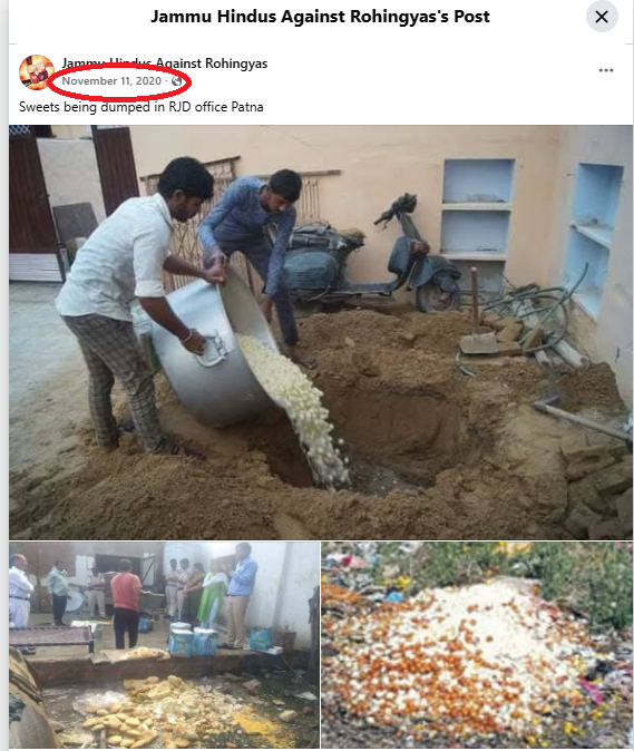 ಹೇಳಿಕೆ/Claim: ಪಾಟ್ನಾದ RJD ಕಚೇರಿಯಲ್ಲಿ ಸಿಹಿತಿಂಡಿಗಳನ್ನು ಕೆಸರುಗುಂಡಿಯಲ್ಲಿ ಸುರಿಯಲಾಗುತ್ತಿದೆ ಎಂದು ವೈರಲ್ ಪೋಸ್ಟ್ನಲ್ಲಿಹೇಳಲಾಗಿದೆ.