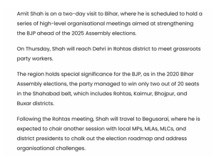 ಮುಂದೆ, ಅಮಿತ್ ಶಾರವರ ಅಧಿಕೃತ ಯೂಟ್ಯೂಬ್ ವಾಹಿನಿಯನ್ನೂ ನಾವು ನೋಡಿದೆವು, ಅಲ್ಲಿ ಅವರ ಭಾಷಣದ ನೇರ ಪ್ರಸಾರ ಮಾಡಲಾಗಿತ್ತು. ಅವರು ಸೆಪ್ಟೆಂಬರ್ 18, 2025ರಂದು ಬೇಗುಸರಾಯಿ ಬಿಜೆಪಿ ಕಾರ್ಯಕರ್ತರ ಸಭೆಯ ಸಂದರ್ಭದಲ್ಲಿ ಪಾಟ್ನಾದಲ್ಲಿ ಈ ಭಾಷಣವನ್ನು ನೀಡಿದ್ದರು. ಅವರ ಯೂಟ್ಯೂಬ್ ವಾಹಿನಿಯಲ್ಲಿನ ದೃಶ್ಯಾವಳಿಗಳನ್ನು ಇಲ್ಲಿ ನೋಡಿ.
