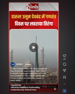 ಸಂದರ್ಭದ ಕುರಿತು ಇನ್ನಷ್ಟು ತಿಳಿದುಕೊಳ್ಳಲು ನಾವು ಮೊದಲು ವೀಡಿಯೊದ ವಿವಿಧ ಕೀಫ್ರೇಮ್‌ಗಳನ್ನು ತೆಗೆದು ರಿವರ್ಸ್ ಇಮೇಜ್ ಹುಡುಕಾಟವನ್ನು ನಡೆಸಿದೆವು. ಹುಡುಕಾಟದಲ್ಲಿ ನಮಗೆ ‘inh24x7’ ಎಂಬ  ಬಳಕೆದಾರರು ಅಪ್‌ಲೋಡ್ ಮಾಡಿದ ಇನ್ಸ್ಟಾಗ್ರಾಂ ರೀಲ್‌ ದೊರಕಿತು, ಅದರ ಶೀರ್ಷಿಕೆ ಹಿಂದಿ ಭಾಷೆಯಲ್ಲಿ ಹೀಗಿತ್ತು: गणतंत्र दिवस के अवसर पर दारुल उलूम देवबंद में राष्ट्रीय ध्वज तिरंगा फहराया गया। इस मौके पर देशभक्ति और एकता का संदेश दिया गया, जिसकी तस्वीरें और वीडियो सोशल मीडिया पर चर्चा में हैं ಇದು ಕನ್ನಡಾನುವಾದ ಹೀಗಿದೆ: ‘ಗಣರಾಜ್ಯೋತ್ಸವದ ಸಂದರ್ಭದಲ್ಲಿ, ದಾರುಲ್ ಉಲೂಮ್ ದಿಯೋಬಂದ್‌ನಲ್ಲಿ ರಾಷ್ಟ್ರಧ್ವಜ, ತ್ರಿವರ್ಣ ಧ್ವಜವನ್ನು ಹಾರಿಸಲಾಯಿತು. ಈ ಸಂದರ್ಭದಲ್ಲಿ ದೇಶಭಕ್ತಿ ಮತ್ತು ಏಕತೆಯ ಸಂದೇಶವನ್ನು ಸಾರಲಾಯಿತು, ಅದರ ಚಿತ್ರಗಳು ಮತ್ತು ವೀಡಿಯೊ ಸಾಮಾಜಿಕ ಜಾಲತಾಣಗಳಲ್ಲಿ ಹರಿದಾಡುತ್ತಿವೆ.’ ಪೋಸ್ಟ್‌ನ ಸ್ಕ್ರೀನ್‌ಶಾಟ್ ಅನ್ನು ಕೆಳಗೆ ನೋಡಿ