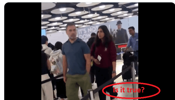 ಕಡೆನುಡಿ/Conclusion: ಈ ಹೇಳಿಕೆ ತಪ್ಪು ನಿರೂಪಣೆಯಾಗಿದೆ. ವೀಡಿಯೊ ವಾಸ್ತವವಾಗಿ ರಾಹುಲ್ ಗಾಂಧಿ ತಮ್ಮ ಸೋದರಿ ಪ್ರಿಯಾಂಕಾ ಗಾಂಧಿ ವಾದ್ರಾರವರ ಮಗಳು ಮಿರಾಯಾ ವಾದ್ರಾ ಅವರೊಂದಿಗೆ ಪ್ರಯಾಣಿಸುತ್ತಿರುವುದನ್ನು ಚಿತ್ರಿಸುತ್ತದೆ.