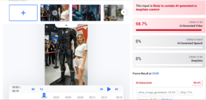 ನಂತರ, ನಾವು ಹೇಳಿಕೆಯಿಂದ ವೀಡಿಯೊವನ್ನು ಡೌನ್ಲೋಡ್ ಮಾಡಿ ಹೈವ್ ಮಾಡರೇಶನ್ನ AI ಡಿಟೆಕ್ಟರ್ ನಲ್ಲಿ ಹಾಕಿದೆವು. ವೀಡಿಯೊವನ್ನು AI ಮೂಲಕ ರಚಿಸಲಾಗಿದೆ ಎಂದು ಫಲಿತಾಂಶಗಳು ಸಾಬೀತುಪಡಿಸಿದವು, ಕೆಳಗೆ ಸ್ಕ್ರೀನ್ಶಾಟ್ ನೋಡಿ –