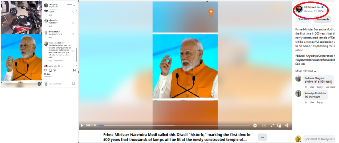 ಕೆಳಗೆ, 2019ರ ಬೇರೊಂದು ಕಾರ್ಯಕ್ರಮದಿಂದ ಮೋದಿಯವರ ಚಿತ್ರವನ್ನು ತೆಗೆದುಕೊಂಡು ಈ ಆಡಿಯೊವನ್ನು ಸೇರಿಸಿ ನಕಲಿ ಹೇಳಿಕೆ ರಚಿಸಲಾಗಿದೆ ಎಂಬುದನ್ನು ಗಮನಿಸಬಹುದು.