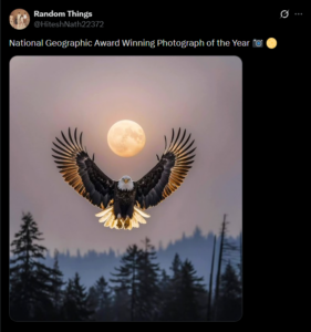 ಹಲವಾರು ಸಾಮಾಜಿಕ ಮಾಧ್ಯಮ ಬಳಕೆದಾರರು ಒಂದು ಚಿತ್ರವು ವರ್ಷದ ನ್ಯಾಷನಲ್ ಜಿಯೋಗ್ರಾಫಿಕ್ ಪ್ರಶಸ್ತಿಯನ್ನು ಗೆದ್ದಿದೆ ಎಂದು ಹೇಳಿಕೊಂಡಿದ್ದಾರೆ. X ಬಳಕೆದಾರ ‘HiteshNath22372’ ಬೋಳು ಹದ್ದಿನ ಚಿತ್ರದೊಂದಿಗೆ ಅಂತಹ ಒಂದು ಹೇಳಿಕೆಯನ್ನು ಹಂಚಿಕೊಂಡಿದ್ದಾರೆ. ಶೀರ್ಷಿಕೆ ಹೀಗಿದೆ: “ವರ್ಷದ ನ್ಯಾಷನಲ್ ಜಿಯೋಗ್ರಾಫಿಕ್ ಪ್ರಶಸ್ತಿ ವಿಜೇತ ಛಾಯಾಚಿತ್ರ”. ವರ್ಷ 2026ಕ್ಕೆ ಸಂಬಂಧಿಸಿದಂತೆ ಇನ್ನೂ ಯಾವುದೇ ಫಲಿತಾಂಶಗಳು ಲಭ್ಯವಿಲ್ಲದ ಕಾರಣ, ಈ ಹೇಳಿಕೆಯಲ್ಲಿರುವ ಚಿತ್ರವು 2025ರ ನ್ಯಾಷನಲ್ ಜಿಯಾಗ್ರಫಿಕ್ನ ಪ್ರತಿಷ್ಠಿತ “ವರ್ಷದ ಚಿತ್ರ” ಪ್ರಶಸ್ತಿಯನ್ನು ಪಡೆದ ಅಧಿಕೃತ ಛಾಯಾಚಿತ್ರದ ಬಗ್ಗೆ ಮಾತನಾಡುತ್ತದೆ ಎಂದು ಅರ್ಥೈಸಿಕೊಳ್ಳಬಹುದು. ಕೆಳಗಿನ ಪೋಸ್ಟ್ ಅನ್ನು ನೋಡಿ-