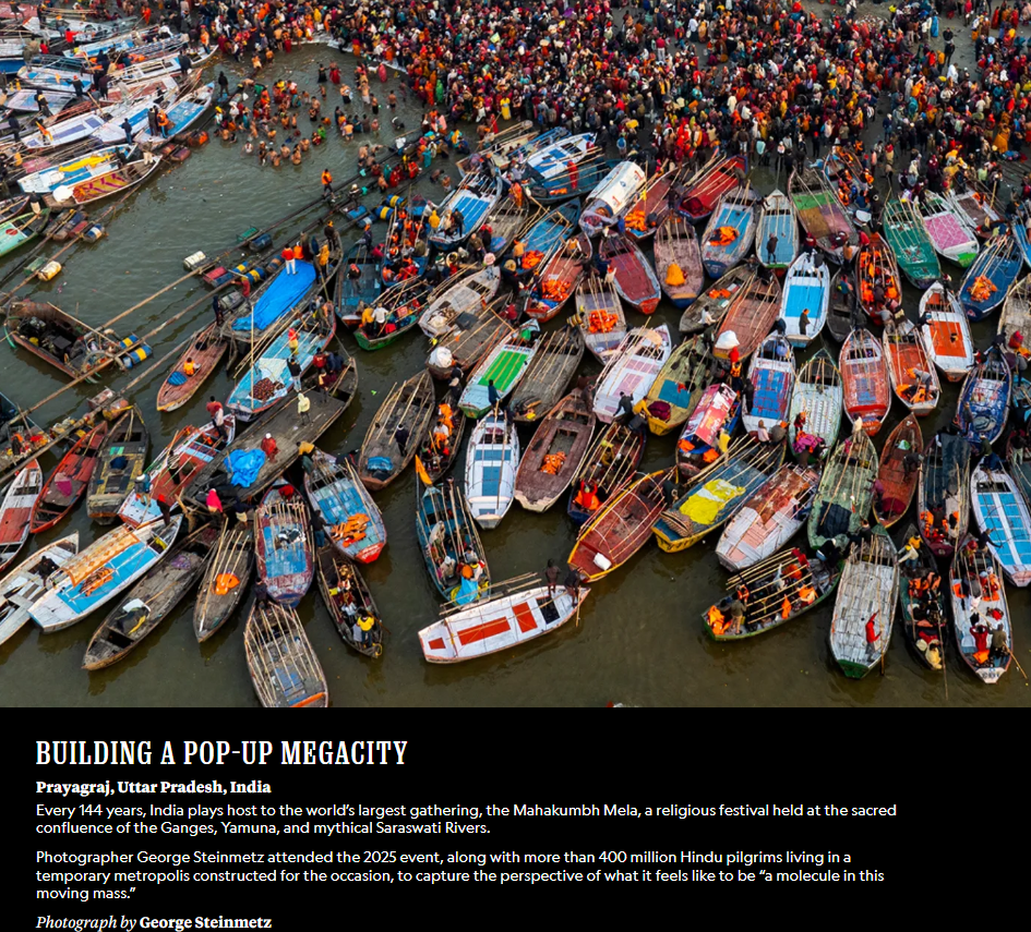 ನ್ಯಾಷನಲ್ ಜಿಯಾಗ್ರಫಿಕ್ನ ಅಧಿಕೃತ “ವರ್ಷ 2025ರ ಚಿತ್ರಗಳು” ಅವರ ಛಾಯಾಗ್ರಾಹಕರು ಸಲ್ಲಿಸಿದ ಸಾವಿರಾರು ಚಿತ್ರಗಳಿಂದ ಆಯ್ದ 25 ಚಿತ್ರಗಳನ್ನು ಒಳಗೊಂಡಿರುತ್ತದೆ, ಇವು ಜಾರ್ಜ್ ಸ್ಟೀನ್ಮೆಟ್ಜ್ ಅವರ “ಬಿಲ್ಡಿಂಗ್ ಎ ಪಾಪ್-ಅಪ್ ಮೆಗಾಸಿಟಿ”, ಮಿಕೈಯಾ ಕಾರ್ಟರ್ ಅವರ “ಅನದರ್ ಜಯಂಟ್ ಲೀಪ್”, ಅನಸ್ತಾಸಿಯಾ ಟೇಲರ್-ಲಿಂಡ್ ಅವರ “ಇನ್ ದಿ ಆರ್ಮ್ಸ್ ಆಫ್ ಫ್ಯಾಮಿಲಿ”, ಜಾನ್ ಸ್ಟ್ಯಾನ್ಮೇಯರ್ ಅವರ “ಬೆಟರ್ ಬೈ ಎ ಬಂಚ್” ಮುಂತಾದ ವನ್ಯಜೀವ, ವಿಜ್ಞಾನ ಮತ್ತು ಮಾನವ ಕಥೆಗಳಂತಹ ವಿಷಯಗಳನ್ನು ಒಳಗೊಂಡಿದೆ. ಸಂಗ್ರಹದ ಕೆಲವು ಛಾಯಾಚಿತ್ರಗಳನ್ನು