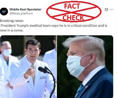 ಡಿಜಿಟೈ ಇಂಡಿಯಾ ಈ ಹೇಳಿಕೆಯನ್ನು ತನಿಖೆ ಮಾಡಲು ನಿರ್ಧರಿಸಿತು ಮತ್ತು ಗೂಗಲ್ ಹುಡುಕಾಟದಲ್ಲಿ ಅದು ಸುಳ್ಳು ಎಂದು ಕಂಡುಬಂತು. ಅಧ್ಯಕ್ಷ ಡೊನಾಲ್ಡ್ ಟ್ರಂಪ್ ಇನ್ನೂ ಆರೋಗ್ಯವಾಗಿದ್ದಾರೆ ಮತ್ತು ಸಕ್ರಿಯರಾಗಿದ್ದಾರೆ ಮತ್ತು ಅವರು ಸ್ವತಃ ಪತ್ರಿಕೆಗಳಿಗೆ ಸ್ಪಷ್ಟನೆ ನೀಡುತ್ತಾ ಅವರು ಉತ್ತಮ ಆರೋಗ್ಯದಲ್ಲಿದ್ದಾರೆ ಎಂದು ಪುನರುಚ್ಚರಿಸಿದ್ದಾರೆ ಮತ್ತು ಚಿತ್ರಗಳು ಮತ್ತು ಹೇಳಿಕೆಗಳು ನಕಲಿ ಎಂದು ವಿವರಿಸಿದ್ದಾರೆ.