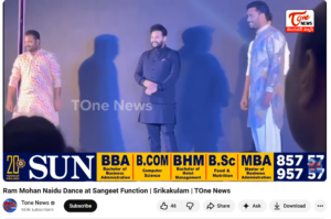 ಜುಲೈ 29, 2025 ರಂದು ಟೋನ್ ನ್ಯೂಸ್ ಅಪ್ಲೋಡ್ ಮಾಡಿದ ಅಂತಹ ಒಂದು ಯೂಟ್ಯೂಬ್ ವೀಡಿಯೊ ಈ ಮುಂದಿನ ಶೀರ್ಷಿಕೆ ಹೊಂದಿತ್ತು: “ರಾಮ್ ಮೋಹನ್ ನಾಯ್ಡು ಸಂಗೀತ ಕಾರ್ಯಕ್ರಮದಲ್ಲಿ ನೃತ್ಯ | ಶ್ರೀಕಾಕುಲಂ | ಟೋನ್ ನ್ಯೂಸ್”. ಇದರಲ್ಲಿ ಸಚಿವರು ಅದೇ ಉಡುಪು ಧರಿಸಿರುವುದನ್ನು ಕಾಣಬಹುದು ಮತ್ತು ದೃಶ್ಯಗಳೂ ಸಹ ಹೇಳಿಕೆಯಲ್ಲಿರುವ ವೀಡಿಯೊಗೆ ಹೊಂದಿಕೆಯಾಗುತ್ತವೆ. ಸ್ಕ್ರೀನ್ಶಾಟ್ ಮತ್ತು ವೀಡಿಯೊವನ್ನು ಕೆಳಗೆ ನೋಡಿ: