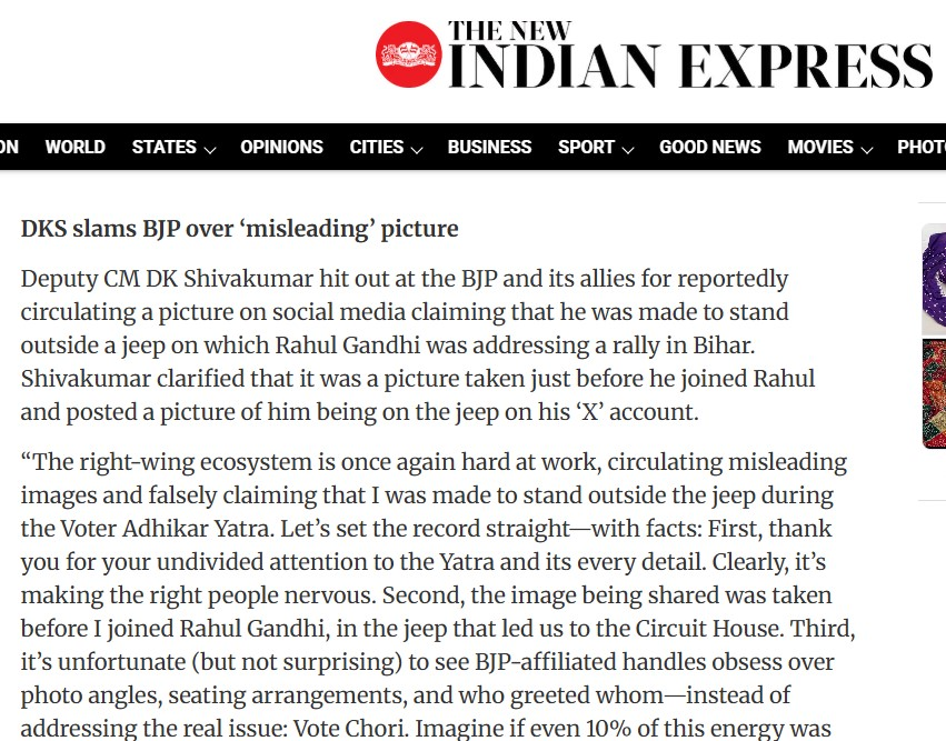 The right-wing ecosystem is once again hard at work, circulating misleading images and falsely claiming that I was made to stand outside the jeep during the Voter Adhikar Yatra.